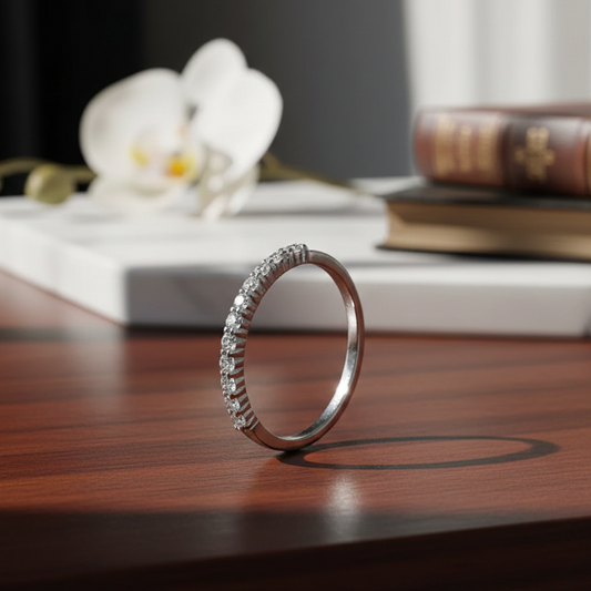 SR6074W 經典微鑲排鋯石純銀線戒