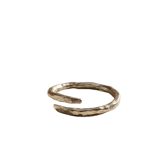 MAGO 925純銀戒指 - 錘目紋 可調節 開口戒