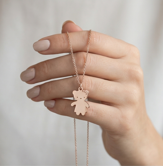 MAGO 925純銀項鍊 - P7679 純銀度玫瑰金可愛少女熊項鍊