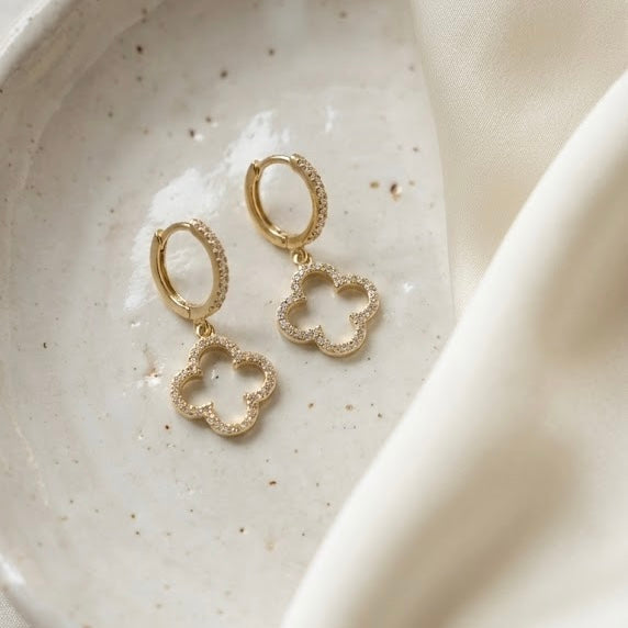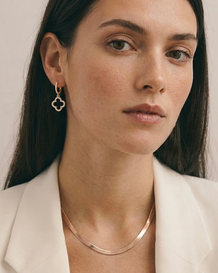 這款耳環以象徵幸運與幸福的四葉草為設計靈感,採用輕盈的鏤空線條勾勒出花瓣輪廓,展現出優雅而不失俏皮的時尚感。