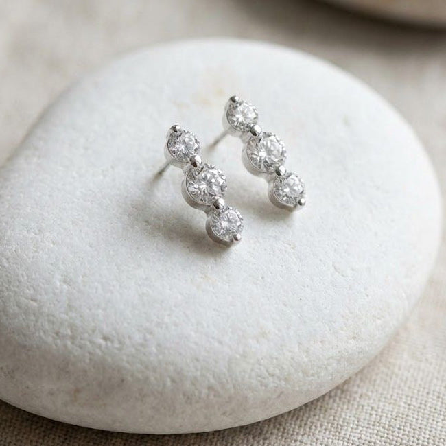 經典三鑽排鑲純銀耳環