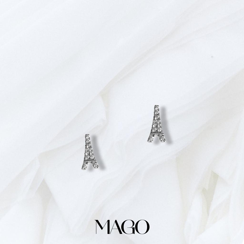SER5077 純銀鍍K金鋯石巴黎鐵塔耳環