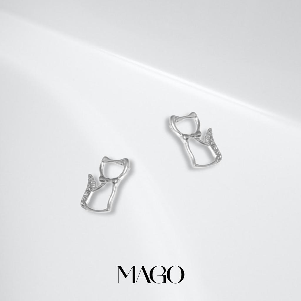SER50788 純銀鍍K金鋯石貓貓耳環