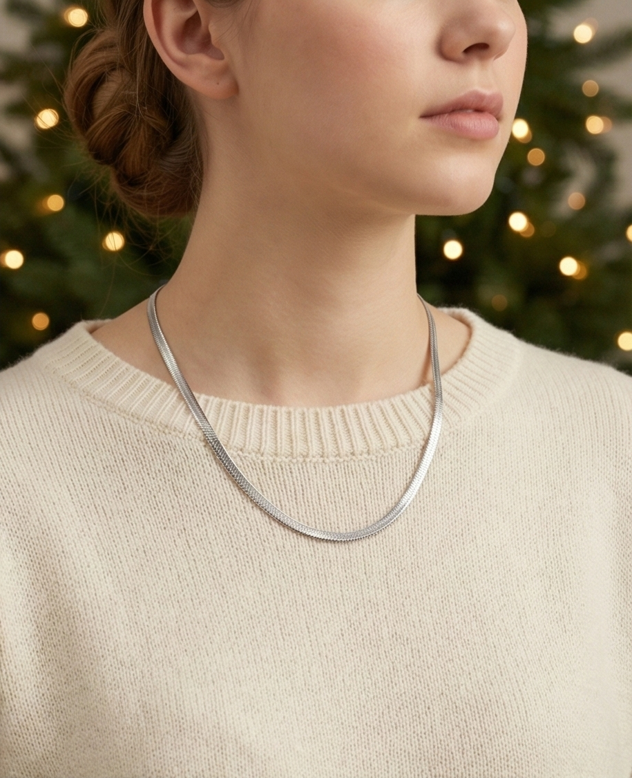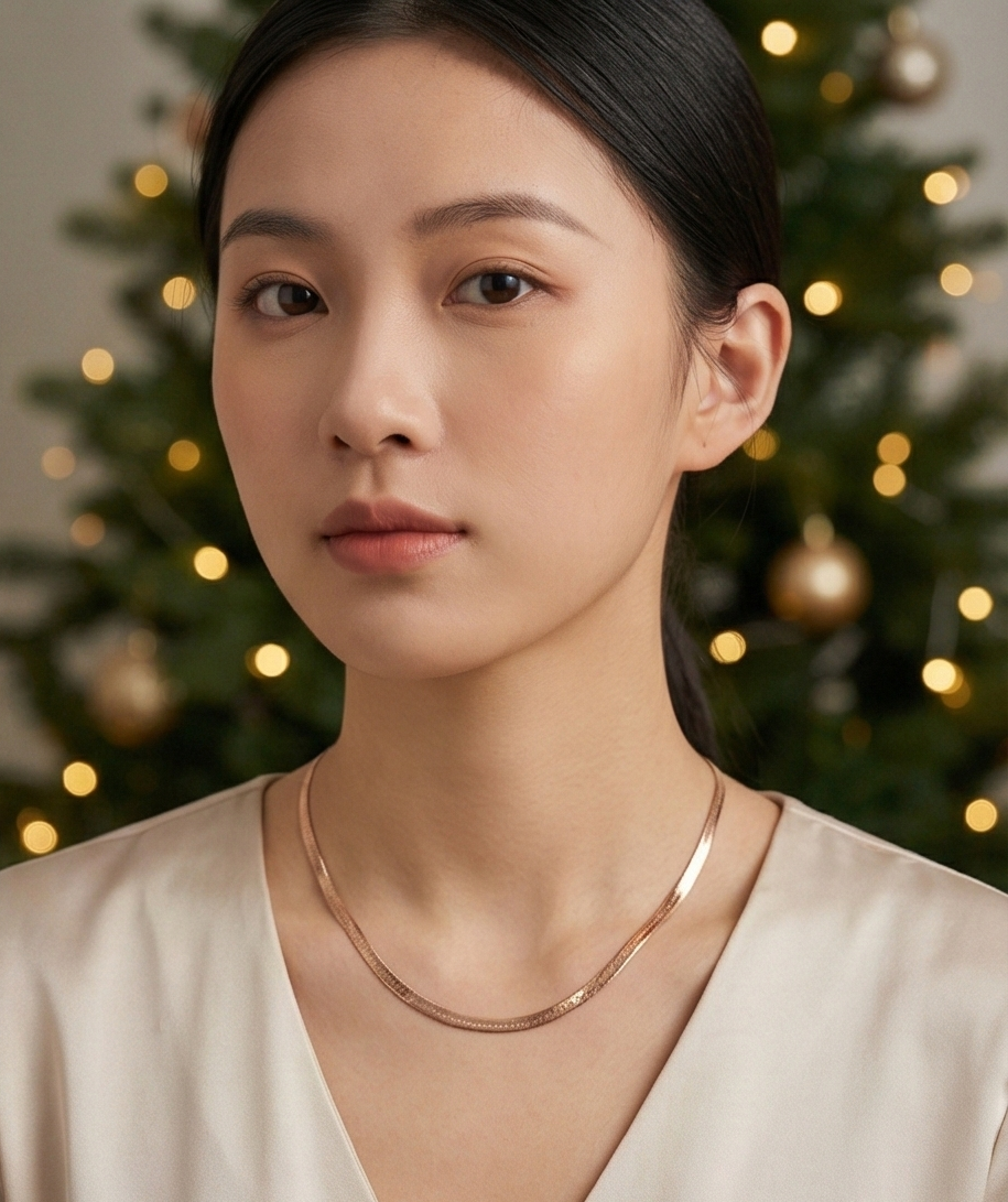 以「流動的光影」為設計靈感, 其獨特的結構使其宛如液態金屬般,順滑地貼合頸部與鎖骨的每一寸曲線。隨著佩戴者的律動,平滑的鏡面會折射出如絲綢般連綿不斷的高級光澤。極簡而充滿力量,是演繹現代女性幹練與優雅氣質的必備基礎單品。