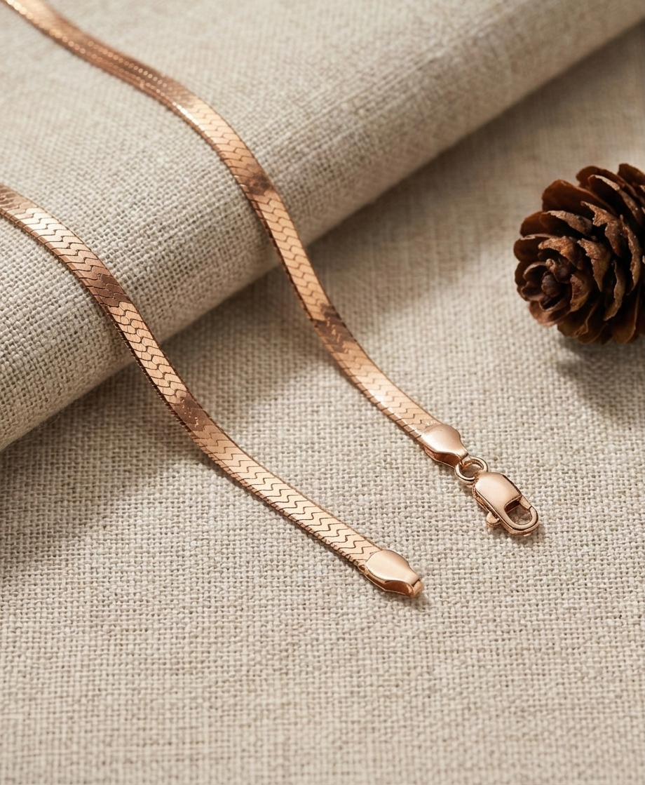 B08093 意大利925絲光純銀/香檳金鎖骨錬