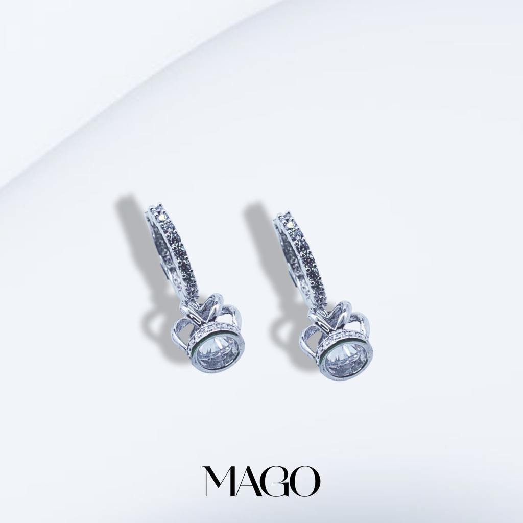 ET1062 純銀鋯石鍍K金美女王冠耳環