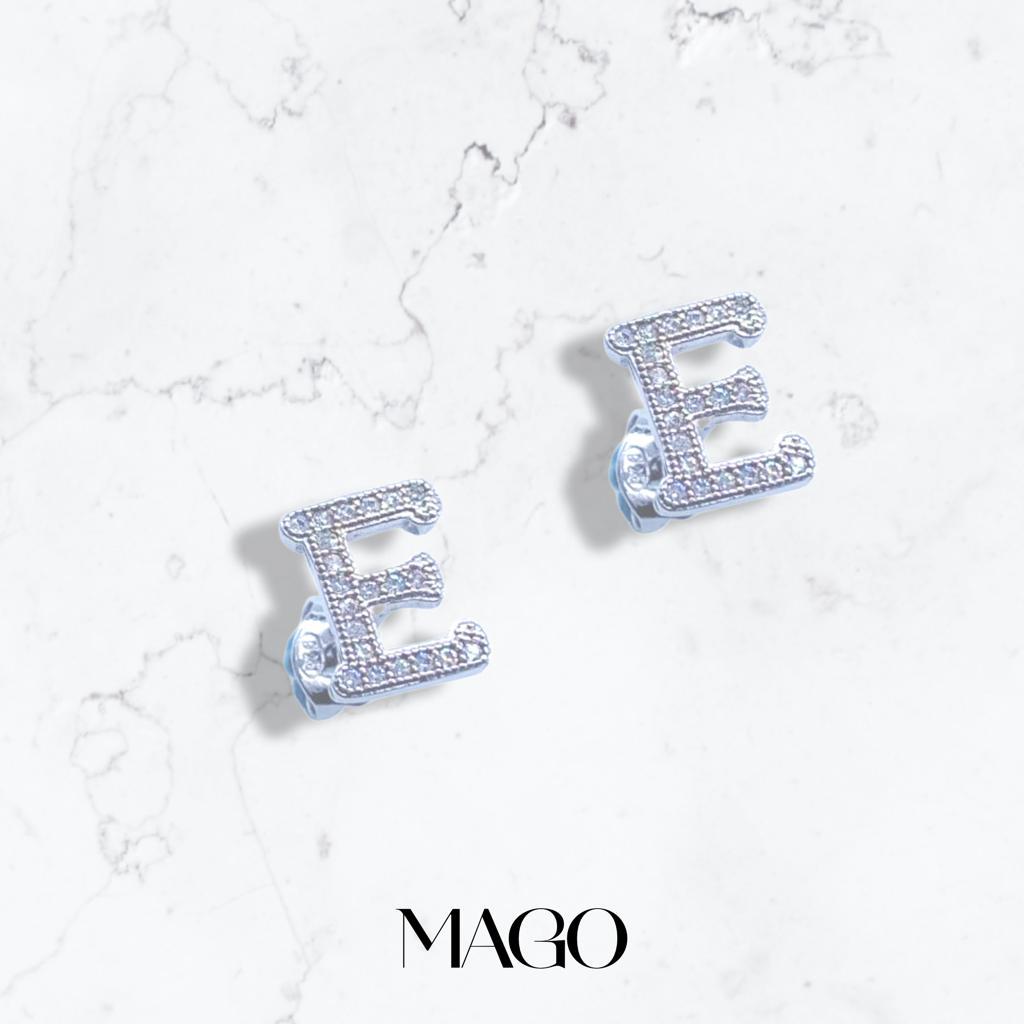 ETLANE 純銀鋯石鍍K金E字字母耳環