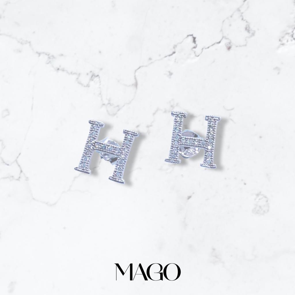 ETLANH 純銀鋯石鍍K金H字字母耳環