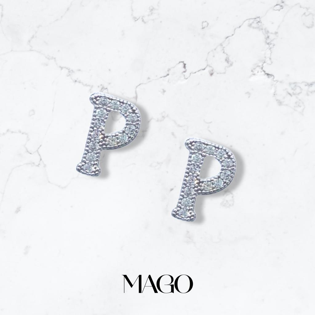 ETLANP 純銀鋯石鍍K金P字字母耳環