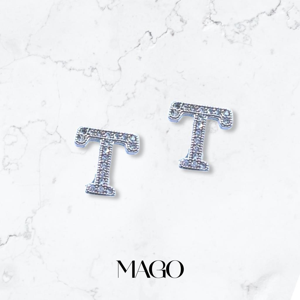ETLANT 純銀鋯石鍍K金T字字母耳環