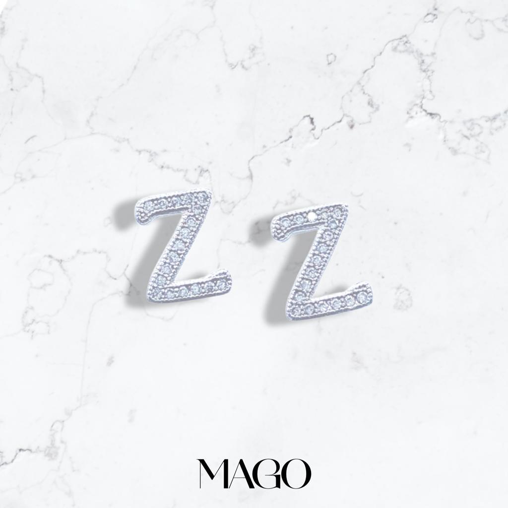 ETLANZ 純銀鋯石鍍K金Z字字母耳環