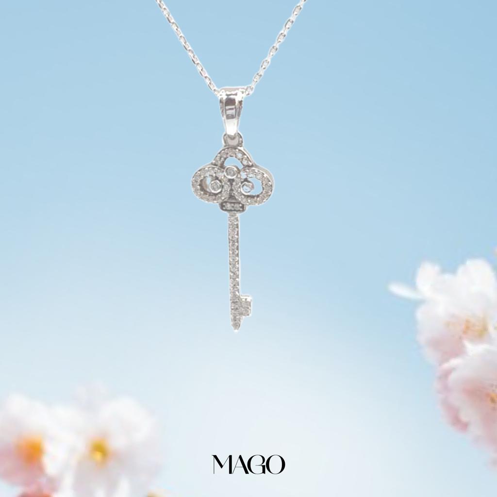 Sp449 純銀鋯石鍍K金精致鑰匙項鍊
