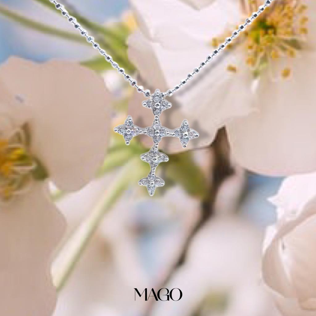 P1550 純銀鋯石鍍K金淑女十字架項鍊