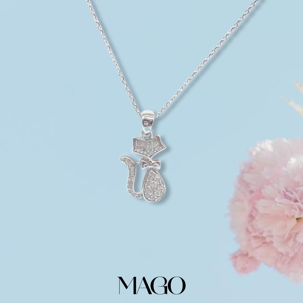 P1553 純銀鋯石鍍K金高冷貓貓項鍊