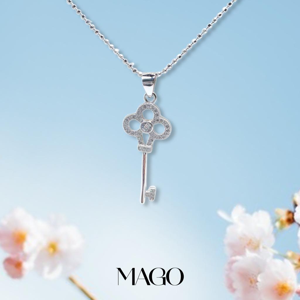 PS03269 純銀鋯石鍍K金奪目鑰匙項鍊