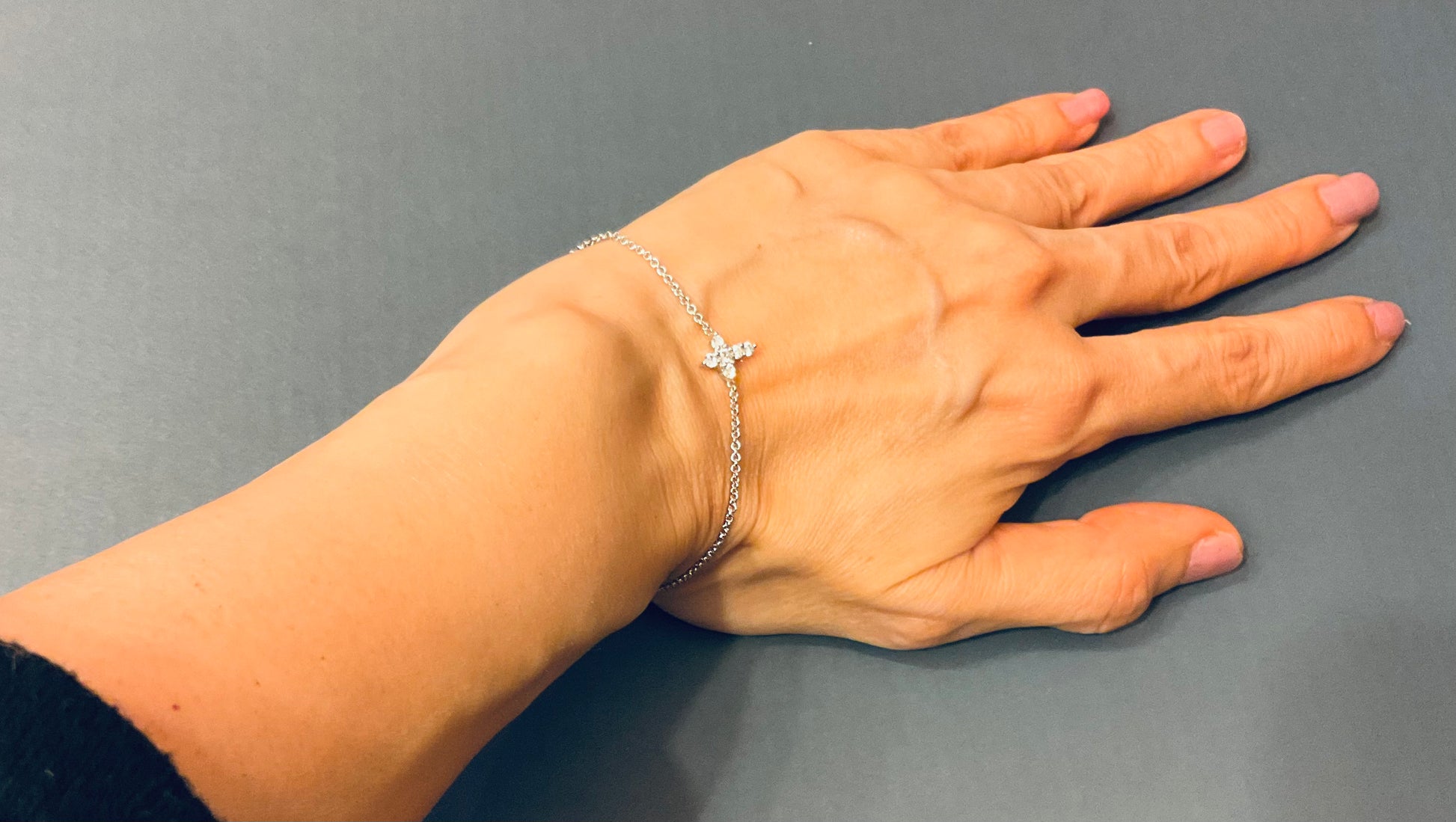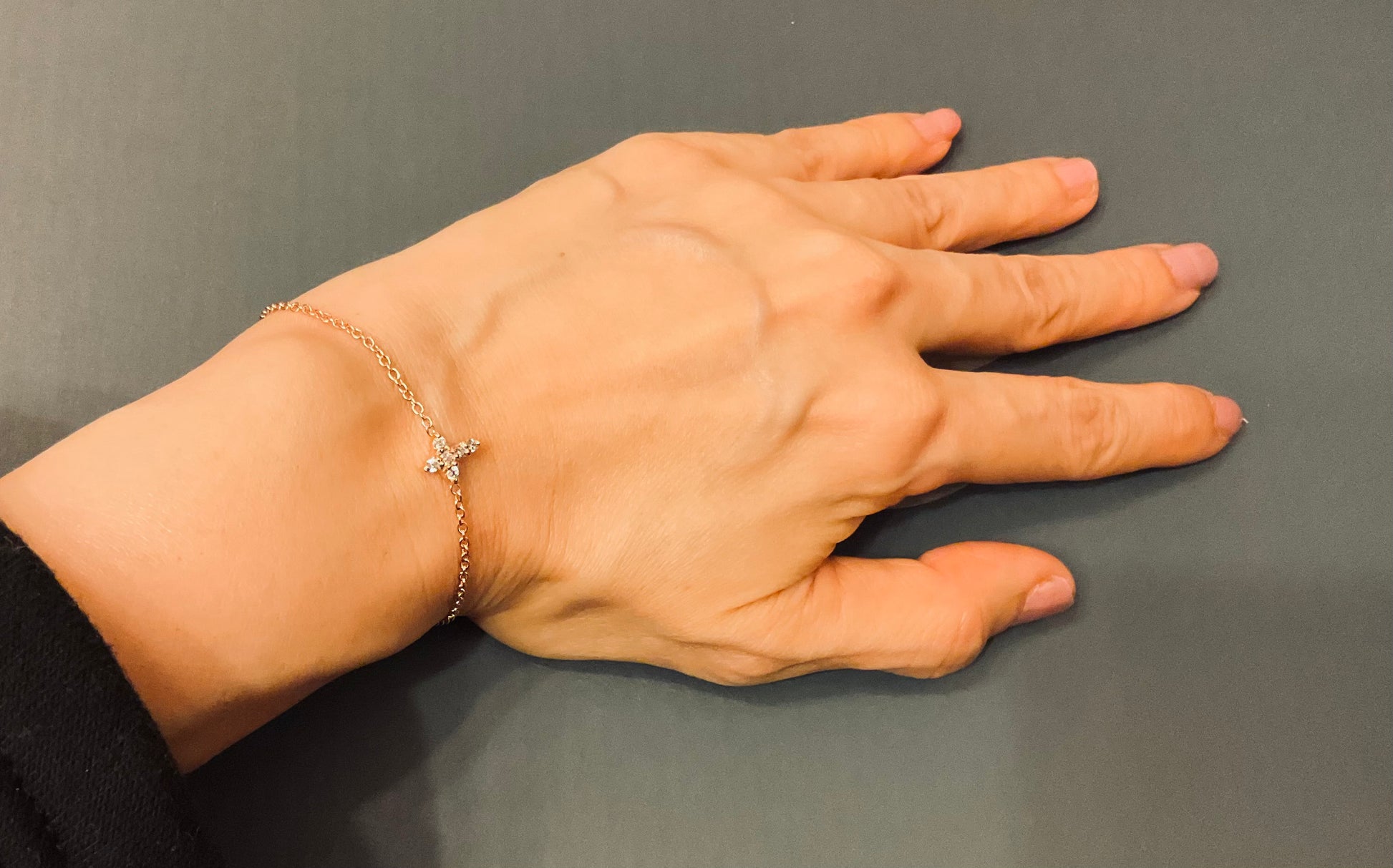 SB1673-S 純銀/鍍K金色鋯石小十字手鍊