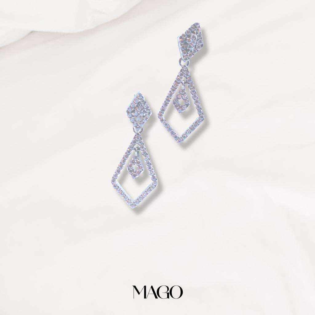 SER5055 純銀鋯石鍍K金靈動菱形耳環