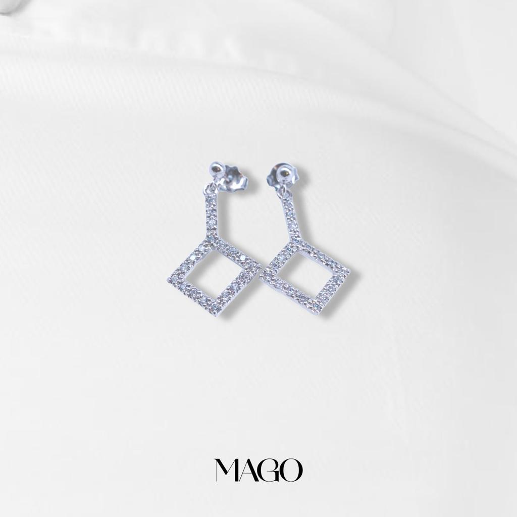 SER5058 純銀鋯石鍍K金溫暖方形耳環