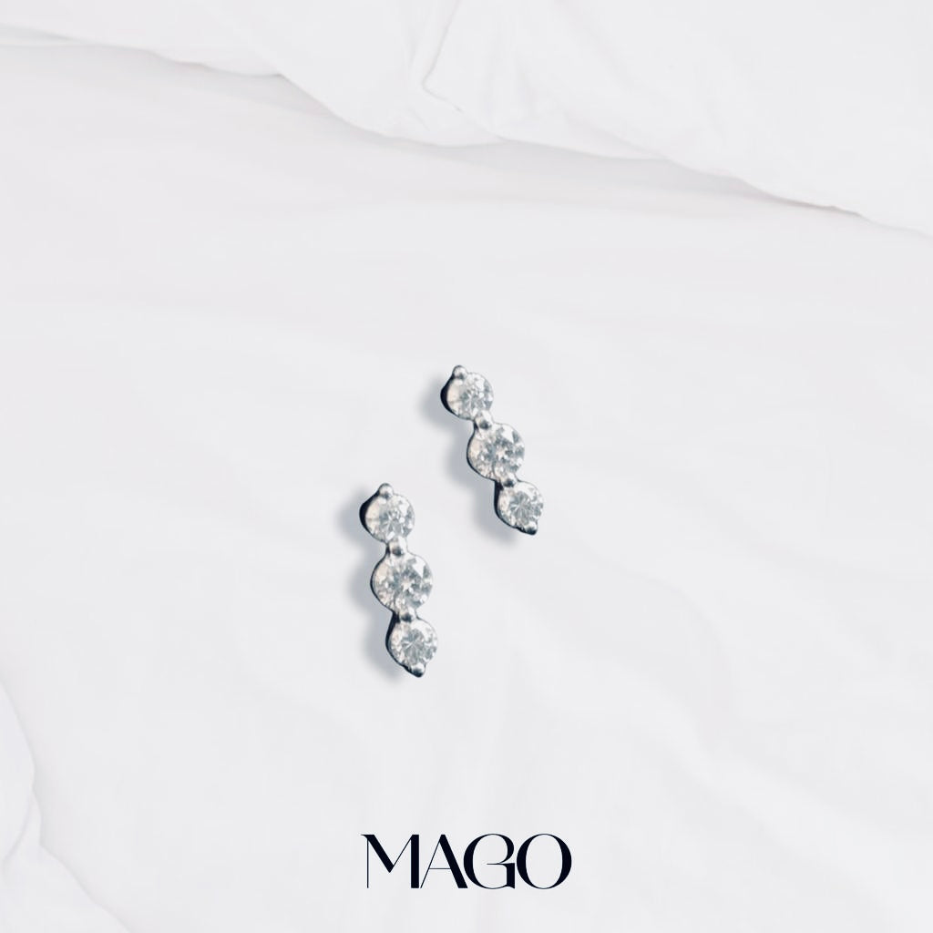 SER5074 純銀鍍K金長鋯石耳環
