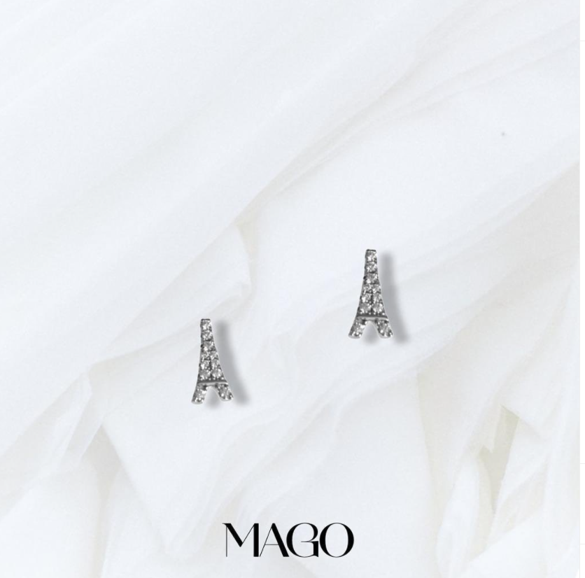 SER5300 純銀鍍K金鋯石鐵塔耳環