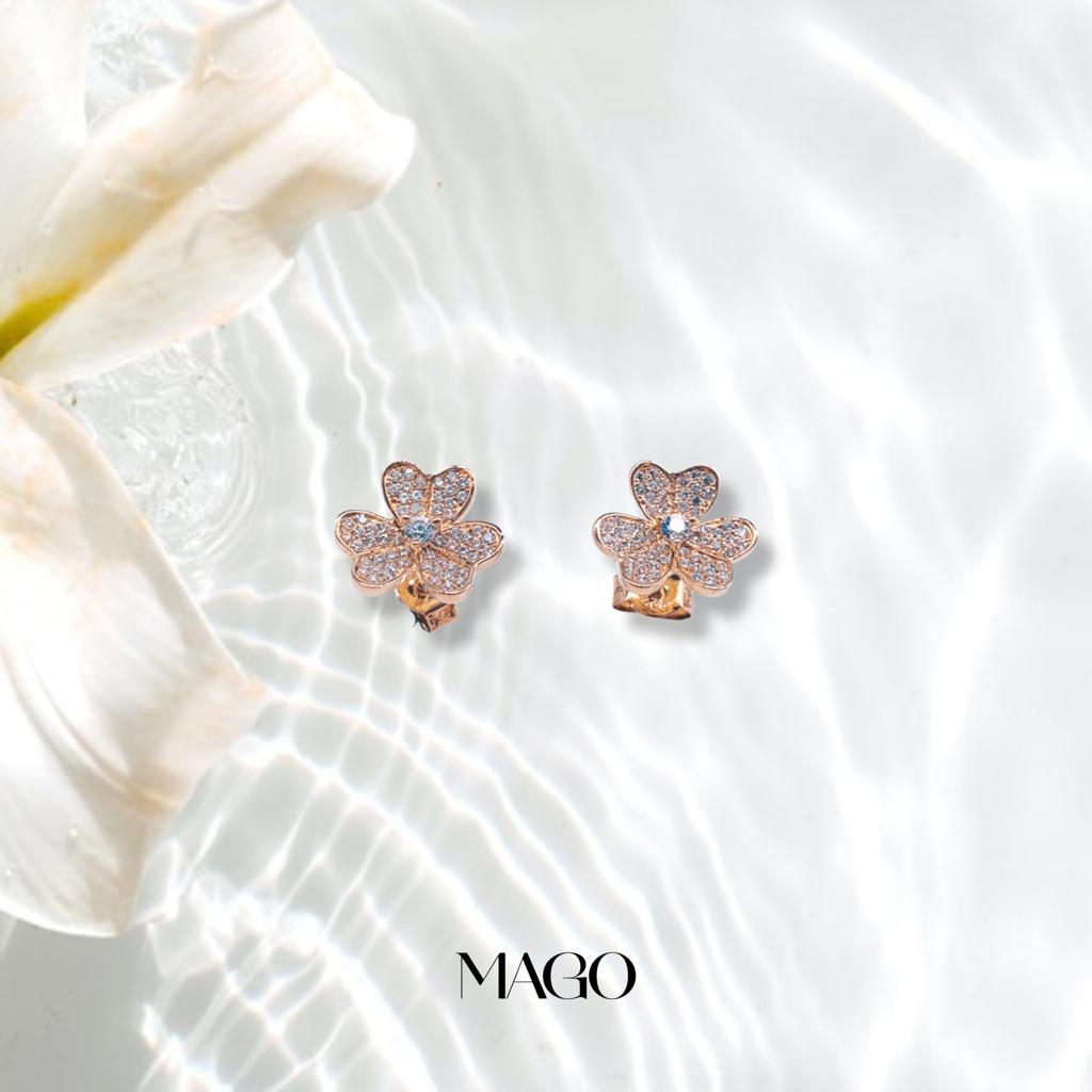 SER986858 純銀鋯石鍍K金華麗花形耳環