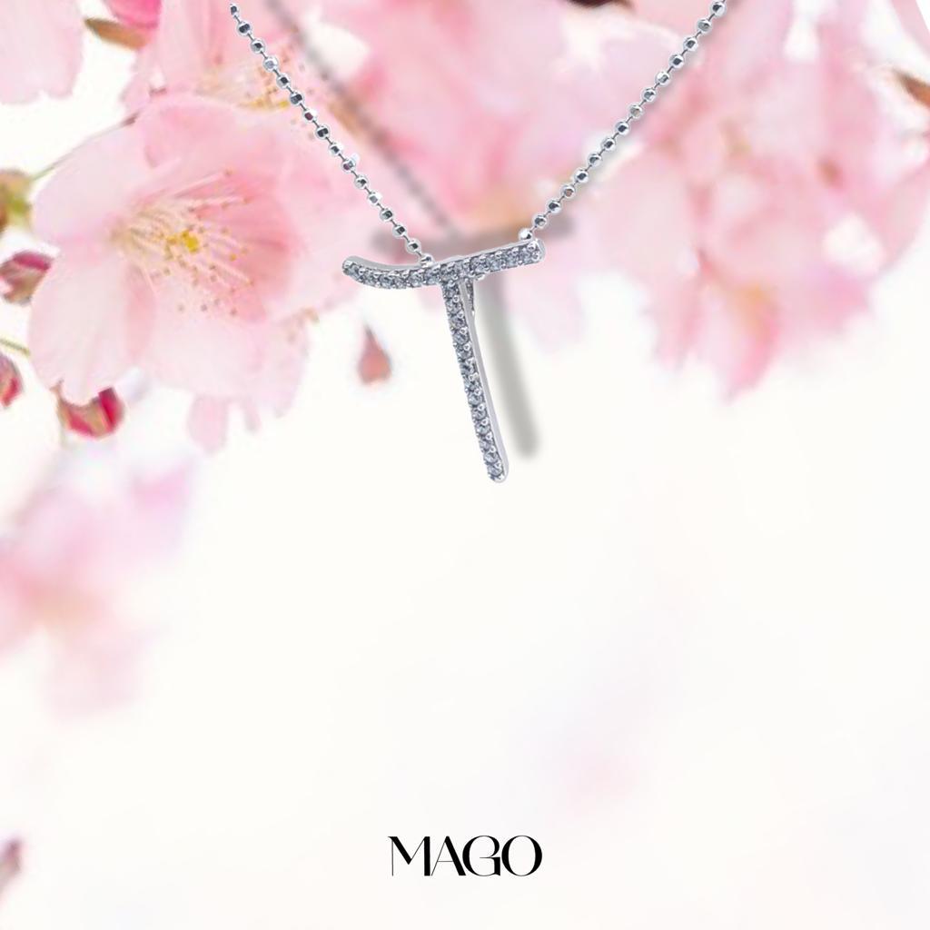 SP098T 純銀鋯石鍍K金T字字母項鍊