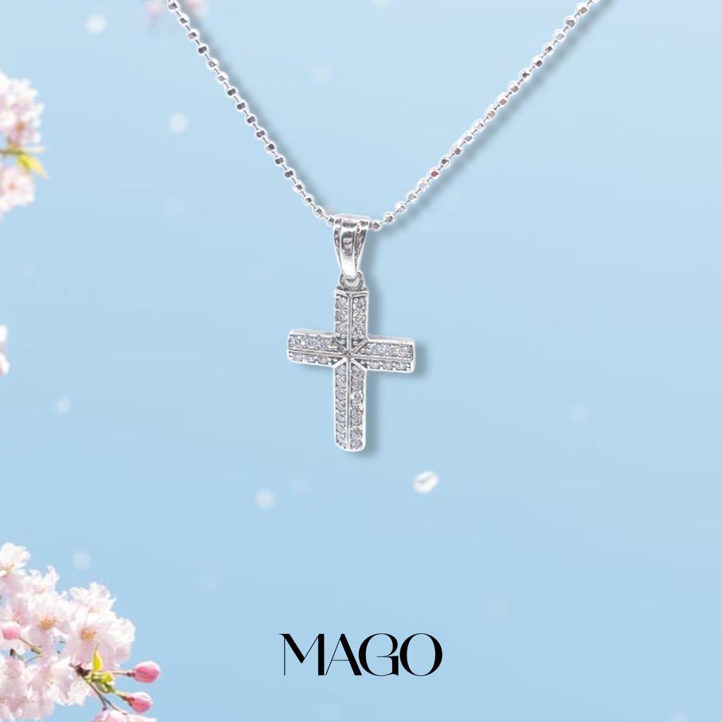 SP356 純銀鋯石鍍K金迷人十字架項鍊
