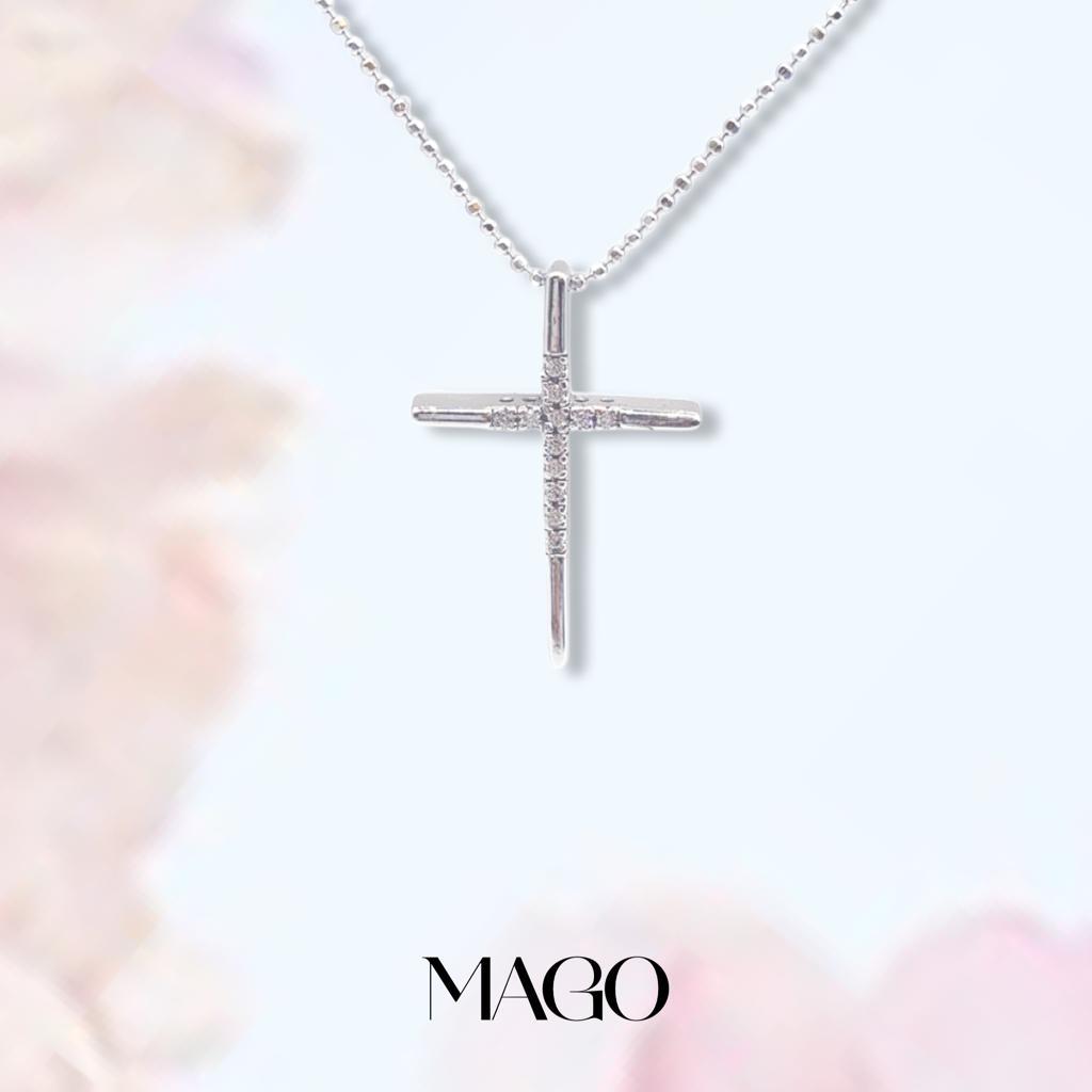 SP4666 純銀鋯石鍍K金端莊十字架項鍊