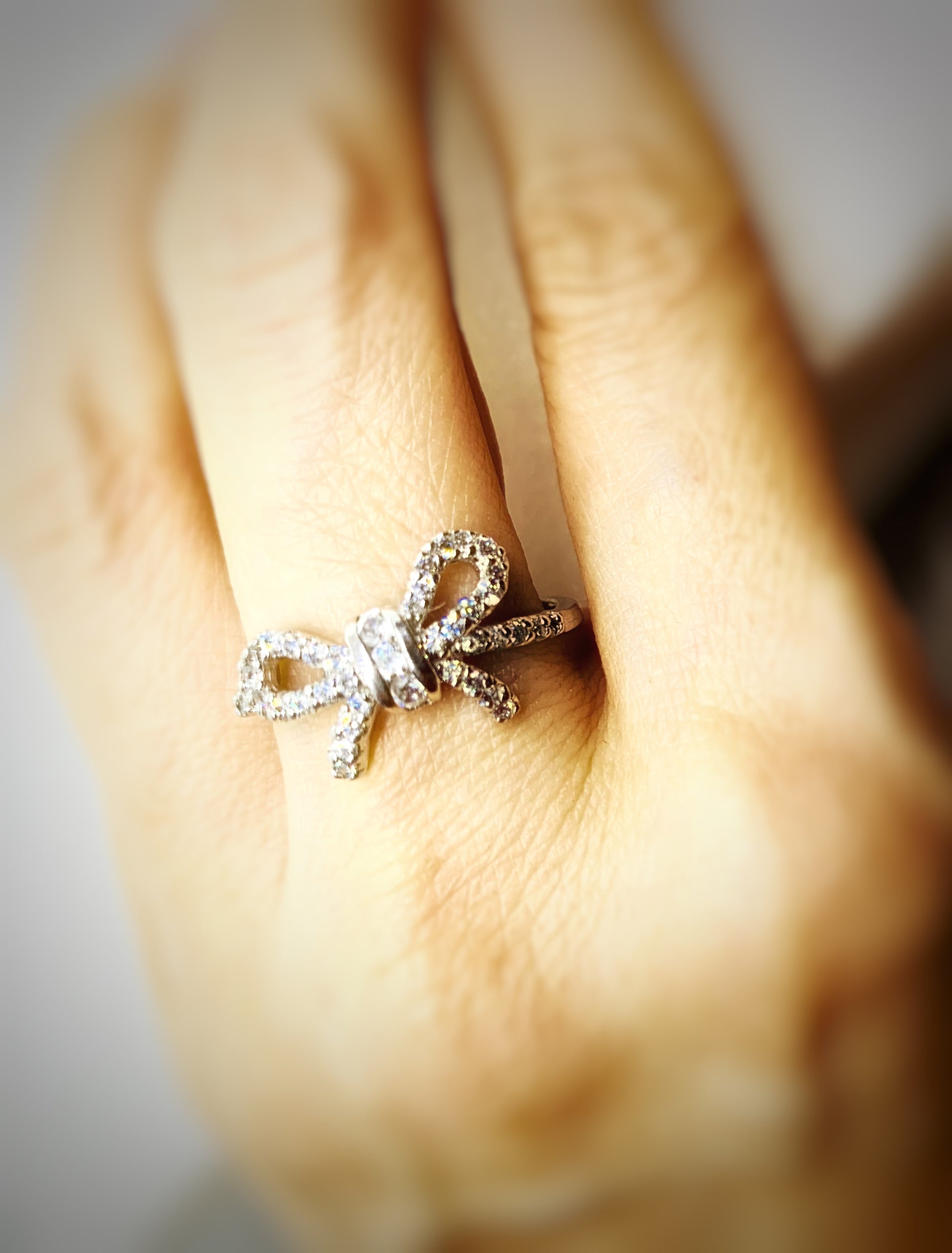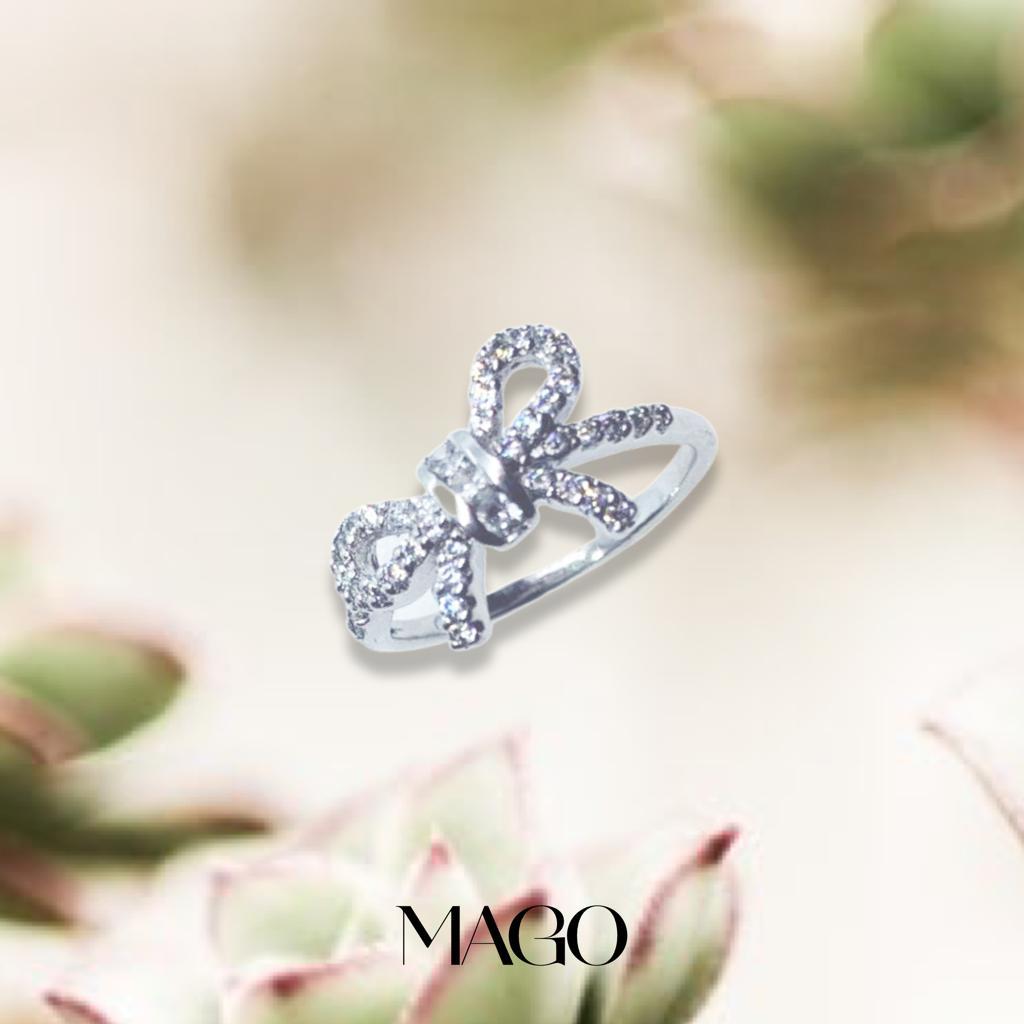 SR5003 純銀鍍K金鋯石蝴蝶結戒指